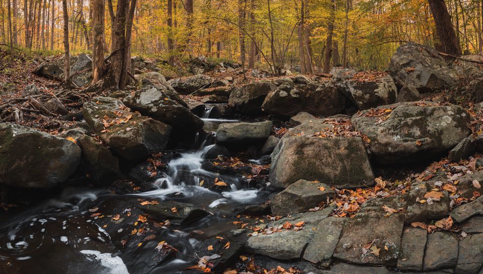 Download 960x544 forest, stream, stones, autumn, nature wallpaper, background playstation ps vita